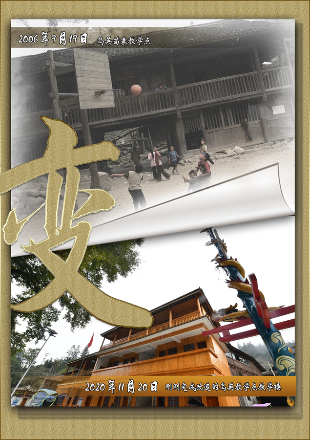 這是一張拼版照片,上圖為:2020年11月20日拍攝的完成改造的烏英教學(xué)點教學(xué)樓(新華社記者黃孝邦攝);下圖為:2006年9月19日拍攝的烏英教學(xué)點(龍濤攝)。新華社發(fā)