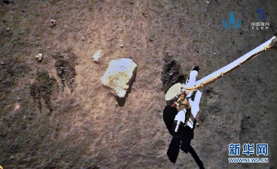 12月2日,嫦娥五號(hào)探測(cè)器在月球表面自動(dòng)采樣。新華社發(fā)(國家航天局供圖)