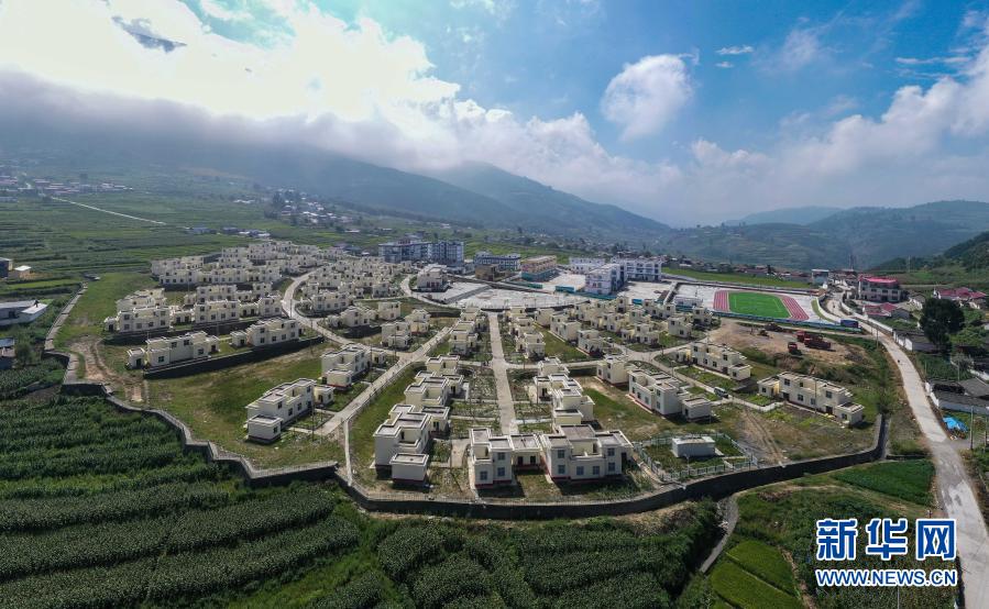 這是9月1日在四川省涼山彝族自治州喜德縣魯基鄉(xiāng)中壩村拍攝的易地扶貧搬遷安置點(diǎn)(無人機(jī)照片)。新華社記者 王曦 攝