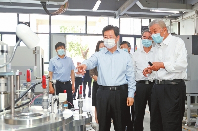 樓陽生走進河南省資源與材料工業(yè)技術(shù)研究院、納米光機電與生物醫(yī)學(xué)工程實驗室,參觀研究成果展,了解技術(shù)產(chǎn)品創(chuàng)新、科研團隊建設(shè)、研發(fā)平臺運行、成果轉(zhuǎn)化等情況。得知研究院準備以靶材料研究申請國家級創(chuàng)新平臺,樓陽生表示省委、省政府將全力支持,指出要把創(chuàng)新鏈、產(chǎn)業(yè)鏈融合起來,推進科研成果產(chǎn)業(yè)化。樓陽生強調(diào),要把現(xiàn)有的科研資源進一步整合重組,凝練一流課題,搭建一流平臺,多出一流成果。