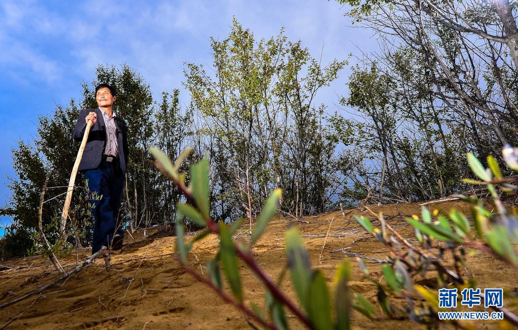 在青海省貴南縣森多鄉(xiāng),生態(tài)管護員吉本加在巡查黃沙頭防風林(2013年9月10日攝)。新華社記者 吳剛 攝
