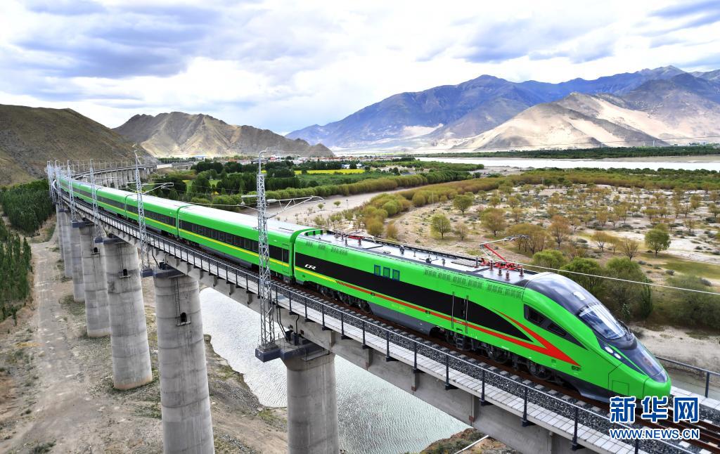 試運行的復興號列車行駛在西藏山南市境內(nèi)(6月16日攝)。新華社記者 覺果 攝
