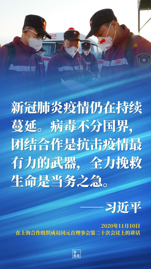 2020年11月10日,習(xí)近平主席在上海合作組織成員國(guó)元首理事會(huì)第二十次會(huì)議上發(fā)表重要講話,首次在上合組織框架內(nèi)提出構(gòu)建“衛(wèi)生健康共同體”“安全共同體”“發(fā)展共同體”“人文共同體”的重大倡議。