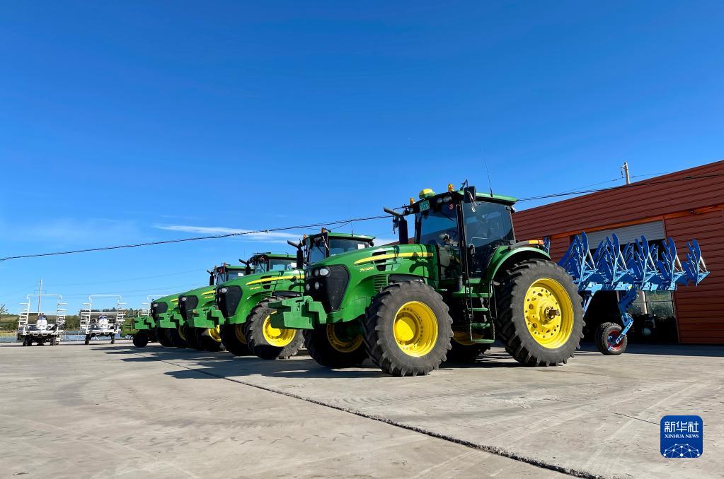 在黑龍江省北安市革命現代農機專業(yè)合作社,現代化農機整齊排放(9月18日攝)。新華社記者 楊思琪 攝