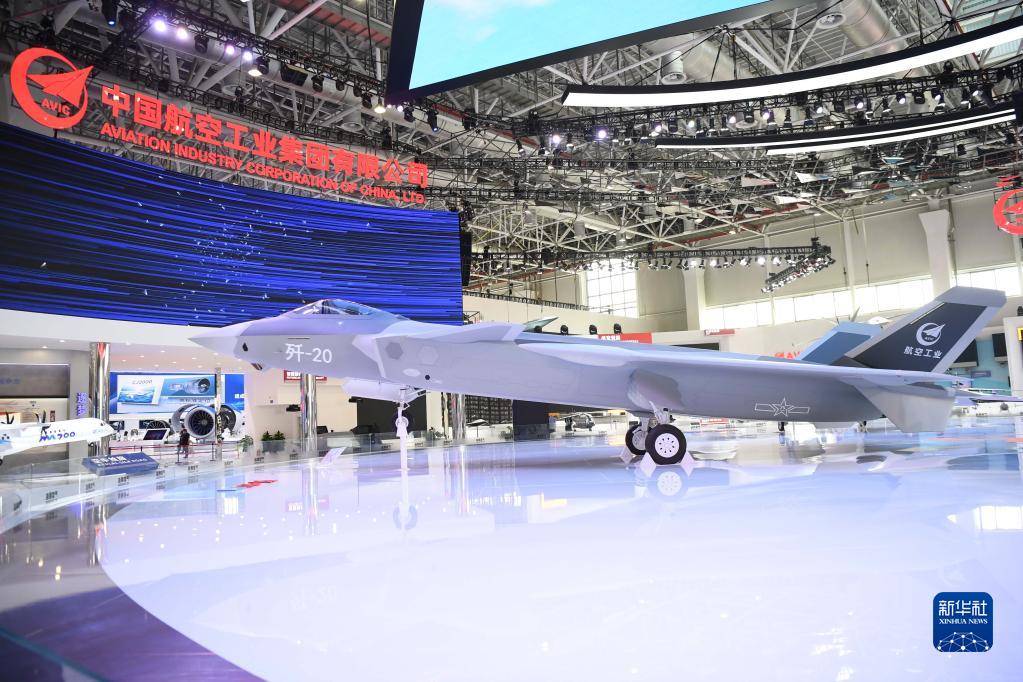 這是中國(guó)航空工業(yè)集團(tuán)有限公司展出的殲-20模型(9月27日攝)。新華社記者 鄧華 攝