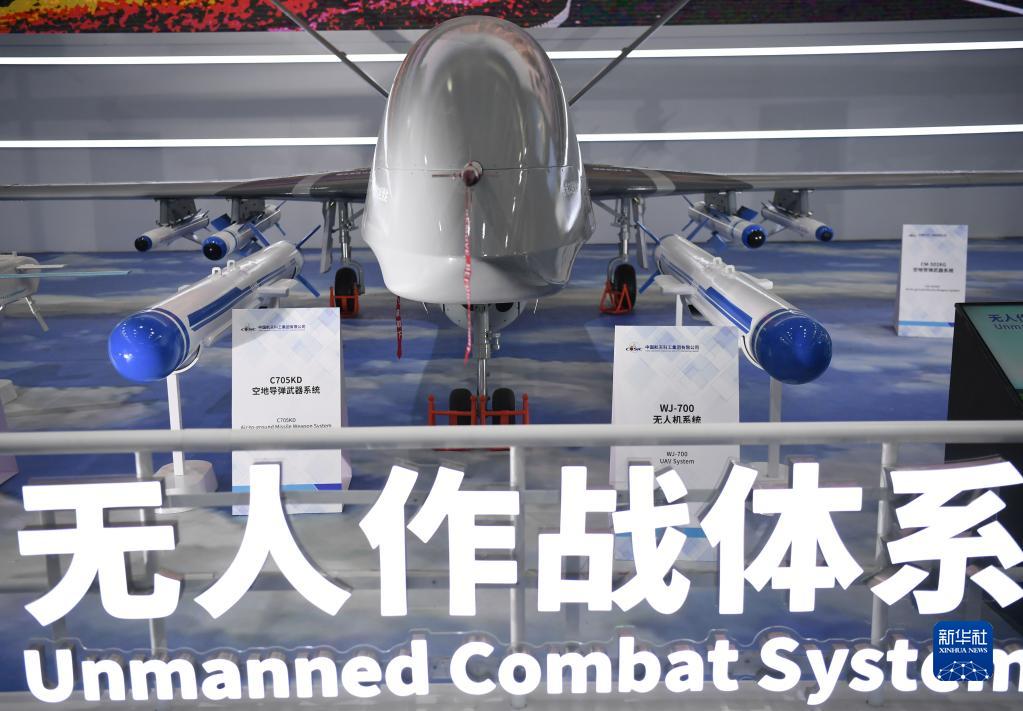 這是中國(guó)航天科工集團(tuán)有限公司展出的無(wú)人機(jī)作戰(zhàn)體系(9月27日攝)。新華社記者 鄧華 攝