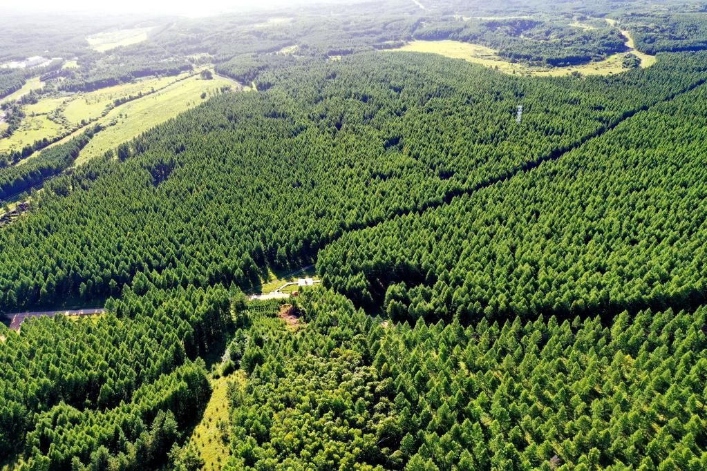 圖為塞罕壩機(jī)械林場(chǎng)風(fēng)光(2021年8月22日攝,無(wú)人機(jī)照片)。新華社記者牟宇攝