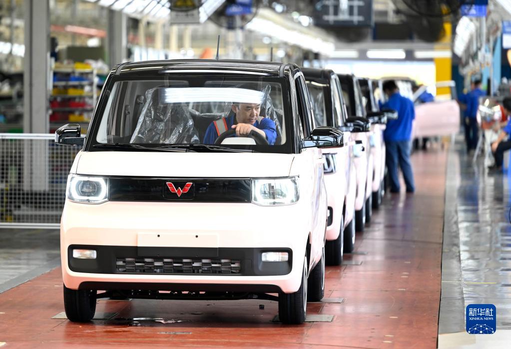 在廣西柳州一家汽車(chē)企業(yè),工人在新能源汽車(chē)生產(chǎn)線上忙碌(8月12日攝)。新華社發(fā)(黎寒池 攝)