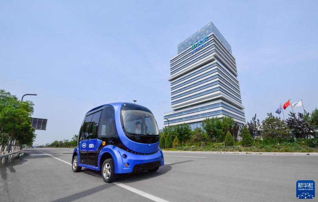 一輛無人駕駛汽車在京津中關(guān)村科技城內(nèi)部道路進(jìn)行道路測(cè)試(5月19日攝)。新華社記者 孫凡越 攝