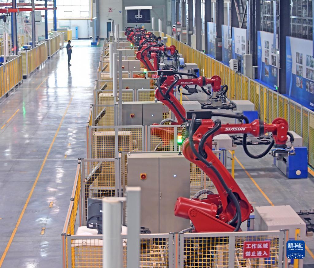 這是沈陽新松機器人自動化股份有限公司工業(yè)機器人生產(chǎn)車間(2017年6月6日攝)。新華社記者 楊青 攝