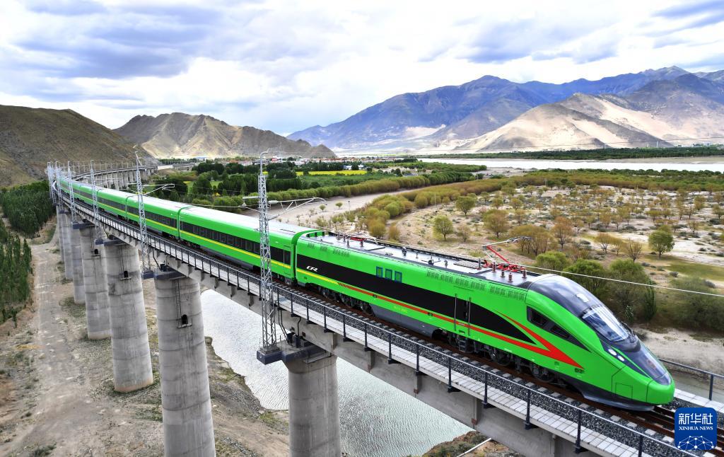 數(shù)千里之外,青藏高原。雅魯藏布江河谷中,全新的復興號列車呼嘯而過。