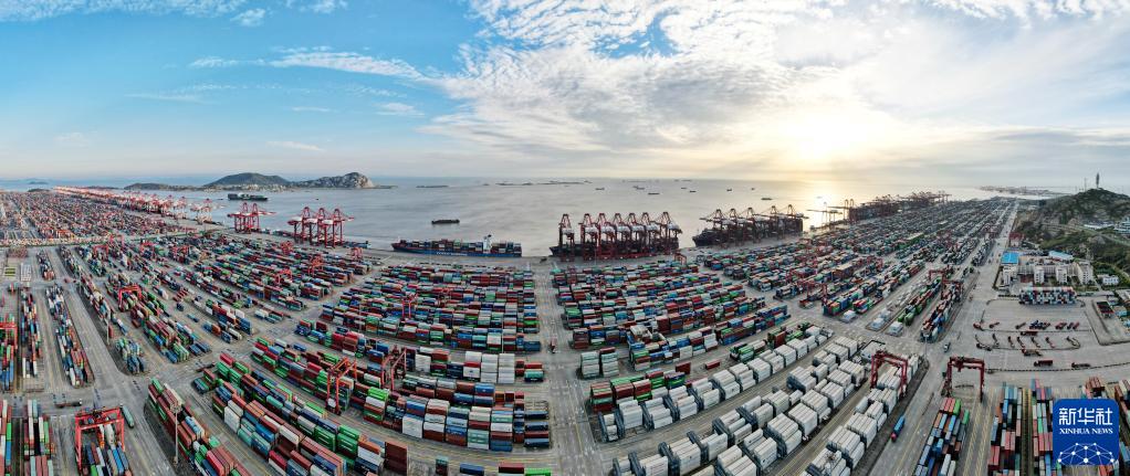 俯瞰上海洋山港碼頭(4月6日攝,無人機照片)。新華社記者 方喆 攝