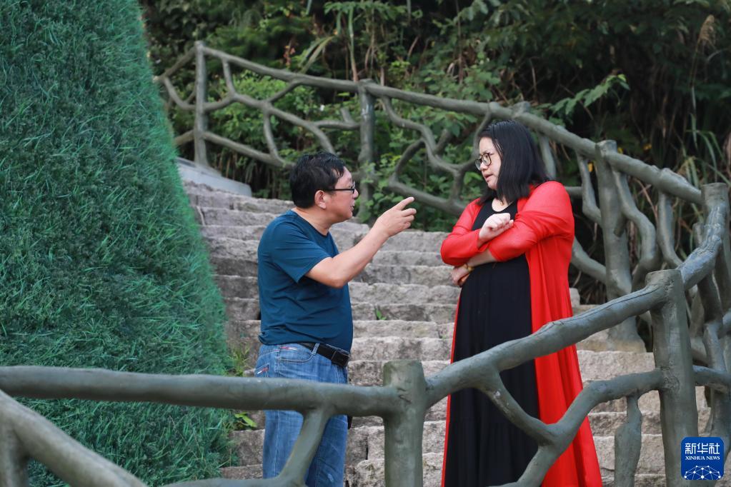 9月17日,張建明(右)在位于合肥市肥西縣的三河荷花都市休閑觀光農(nóng)業(yè)產(chǎn)業(yè)園調(diào)研。新華社記者 張端 攝