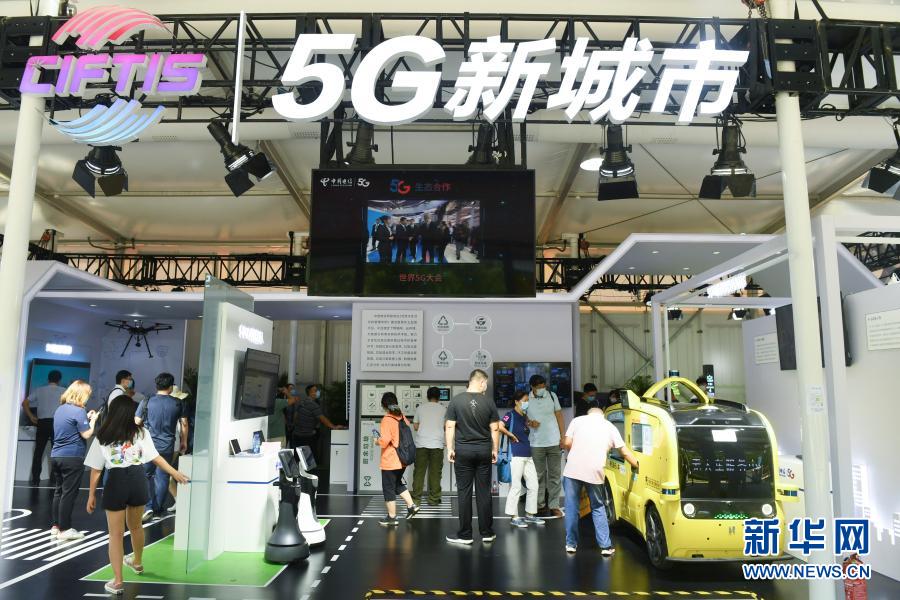 9 月 7 日,觀眾在 2020 年中國國際服務貿(mào)易交易會 5G 通信服務專題展區(qū)參觀。 2020 年中國國際服務貿(mào)易交易會 9 月 4 日至 9 日在北京舉行。新華社記者 魯鵬 攝