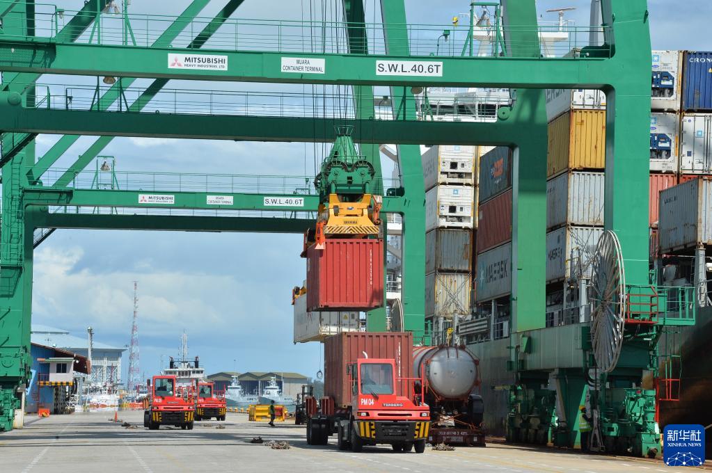 這是2022年1月1日拍攝的正在進(jìn)行集裝箱裝卸作業(yè)的文萊摩拉港碼頭。文萊摩拉港由中國和文萊合資企業(yè)——摩拉港有限公司運(yùn)營。新華社發(fā)(杰弗里·黃攝)