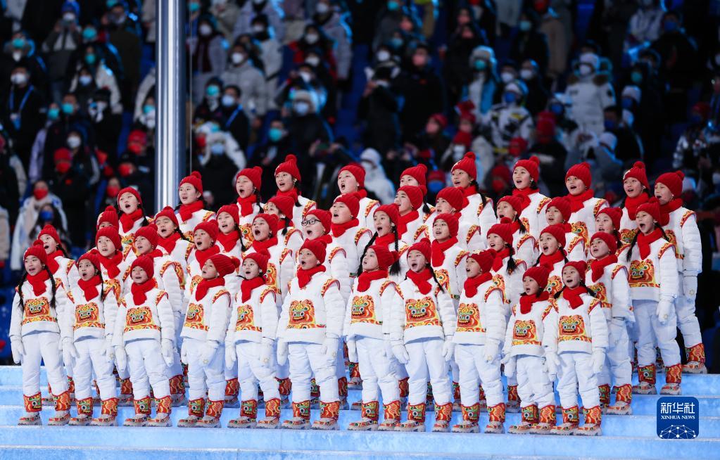 2月4日晚,第二十四屆冬季奧林匹克運(yùn)動(dòng)會(huì)開(kāi)幕式在北京國(guó)家體育場(chǎng)舉行。這是“馬蘭花兒童合唱團(tuán)”用希臘語(yǔ)在開(kāi)幕式上歌唱。新華社記者 曹燦 攝