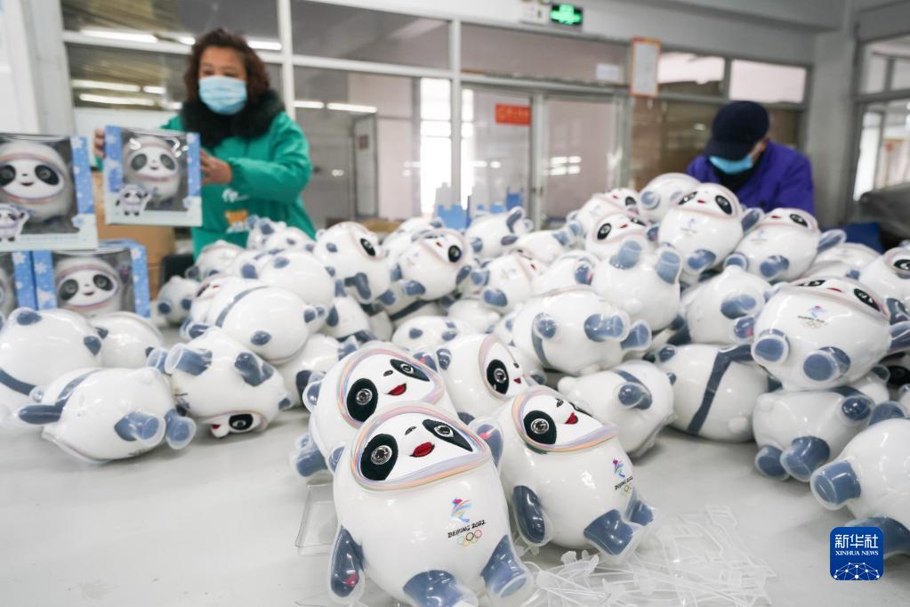 2月8日,工人在江蘇省啟東市一家北京冬奧會(huì)吉祥物“冰墩墩”特許生產(chǎn)商的車(chē)間里忙碌。新華社記者 季春鵬 攝