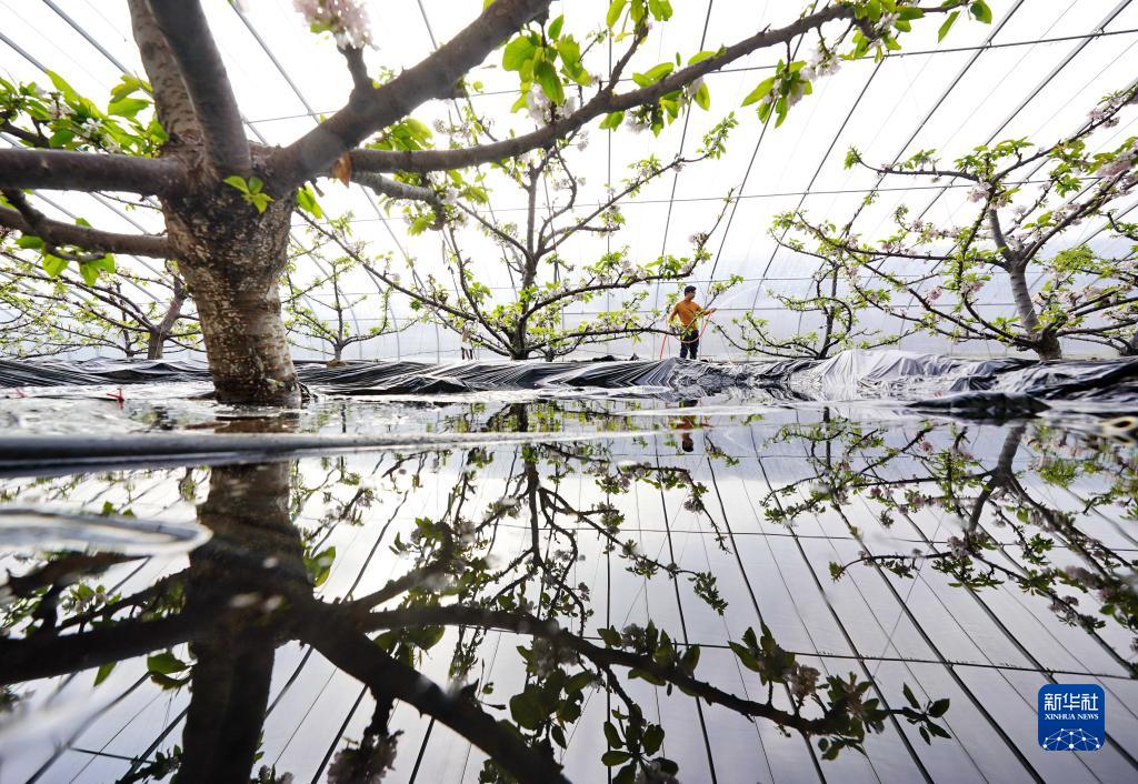 1月11日,河北省灤州市茨榆坨鎮(zhèn)建民種植專(zhuān)業(yè)合作社的一名社員在大棚內(nèi)澆水。新華社記者 楊世堯 攝
