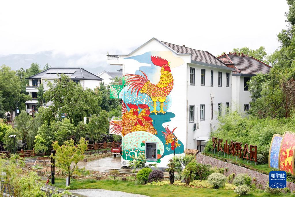 這是浙江衢州市柯城區(qū)溝溪鄉(xiāng)余東村建筑墻壁上的農(nóng)民畫(huà)(2021年5月11日攝)。新華社發(fā)