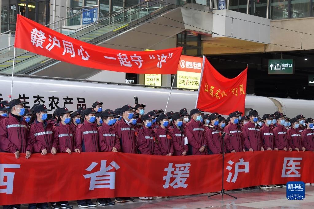 4月3日,江西省援滬醫(yī)療隊從南昌出發(fā),馳援上??箵粢咔?。新華社記者 彭昭之 攝