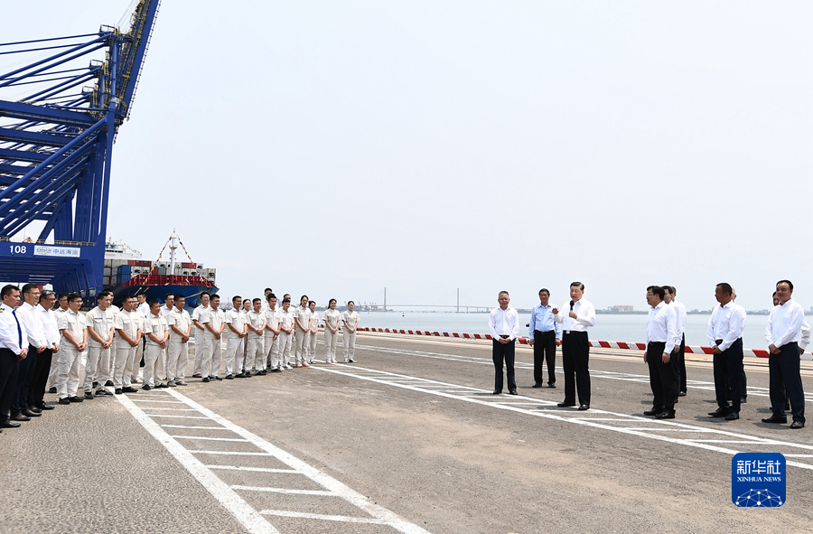 隨后,習(xí)近平來到洋浦國際集裝箱碼頭小鏟灘港區(qū),了解港口建設(shè)發(fā)展情況,同現(xiàn)場(chǎng)作業(yè)人員、掛職干部代表等親切交流。習(xí)近平強(qiáng)調(diào),振興港口、發(fā)展運(yùn)輸業(yè),要把握好定位,增強(qiáng)適配性,堅(jiān)持綠色發(fā)展、生態(tài)優(yōu)先,推動(dòng)港口發(fā)展同洋浦經(jīng)濟(jì)開發(fā)區(qū)、自由貿(mào)易港建設(shè)相得益彰、互促共進(jìn),更好服務(wù)建設(shè)西部陸海新通道、共建“一帶一路”。他指出,黨中央選派干部來自由貿(mào)易港掛職,既體現(xiàn)了黨中央對(duì)自由貿(mào)易港建設(shè)的關(guān)心和支持,也是對(duì)干部的培養(yǎng)鍛煉,要發(fā)揮掛職干部的積極作用,讓他們?cè)诨鶎右痪€增長才干。
