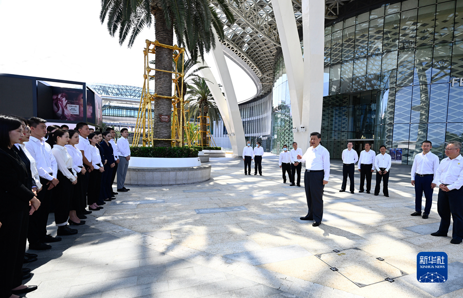 4月10日至13日,中共中央總書記、國家主席、中央軍委主席習(xí)近平在海南考察。這是11日上午,習(xí)近平在三亞國際免稅城同工作人員親切交流。新華社記者 李學(xué)仁 攝