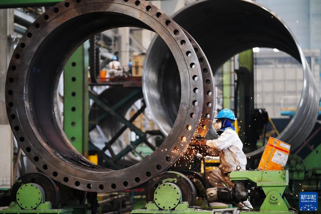 4月14日,在哈電集團(tuán)哈爾濱鍋爐廠有限責(zé)任公司車(chē)間,工人在進(jìn)行生產(chǎn)作業(yè)。新華社記者 王建威 攝