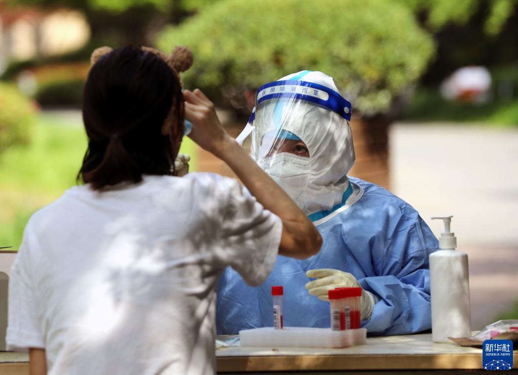 4月12日,在上海松江區(qū)一居民小區(qū)內(nèi),醫(yī)務(wù)人員進(jìn)行核酸檢測(cè)采樣。新華社記者 劉穎 攝