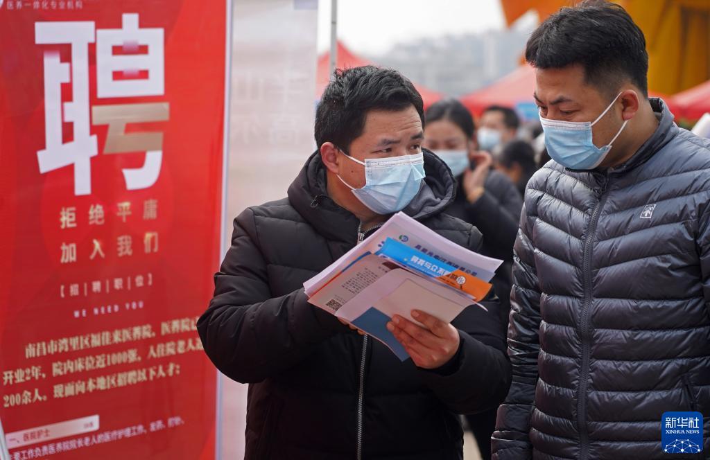 2月25日,江西省南昌市灣里管理局開(kāi)展“春風(fēng)行動(dòng)”線下招聘活動(dòng)。這是求職者在招聘會(huì)現(xiàn)場(chǎng)交流。新華社記者 萬(wàn)象 攝