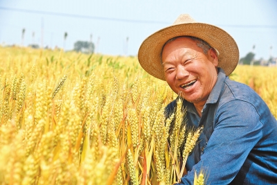 5月22日,杞縣五里河鎮(zhèn)東陶村農(nóng)民望著即將成熟的小麥,臉上滿(mǎn)是欣喜。劉銀忠 攝