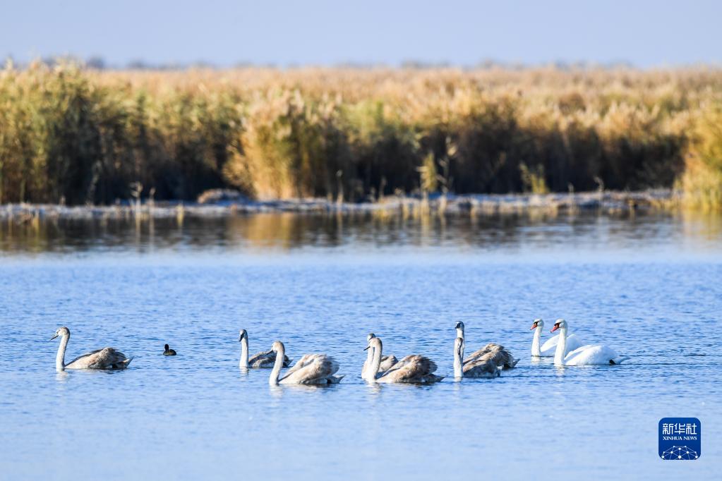 這是2019年10月25日在烏梁素海拍攝的候鳥(niǎo)。新華社記者 劉磊 攝