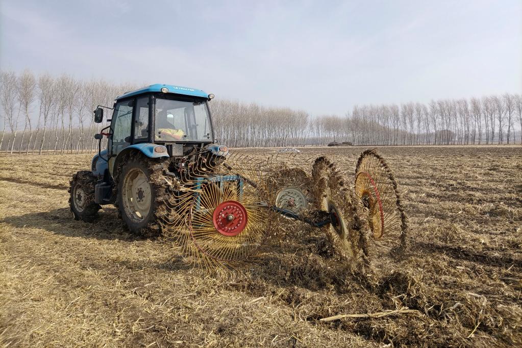 2022年4月4日,吉林德強(qiáng)種植業(yè)家庭農(nóng)場(chǎng)農(nóng)民在田間進(jìn)行秸稈歸行作業(yè)。新華社發(fā)