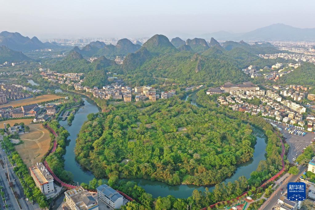 廣西桂林市城區(qū)風(fēng)光(4月10日攝,無人機照片)。新華社記者 周華 攝