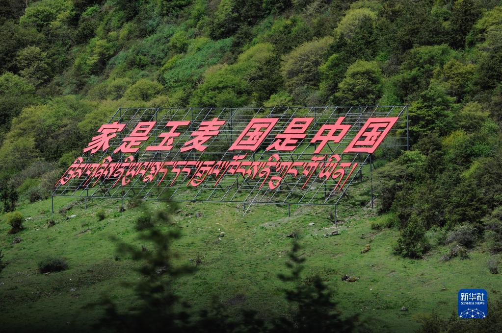玉麥鄉(xiāng)山坡上的標語(6月1日攝)。新華社記者 張汝鋒 攝