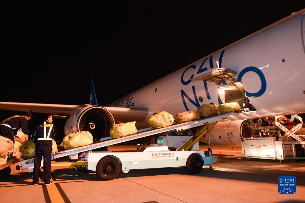 2019年10月30日凌晨,浙江杭州飛往俄羅斯首都莫斯科的首條直達電商貨運航線“菜鳥號”從蕭山國際機場首航。新華社記者 黃宗治 攝