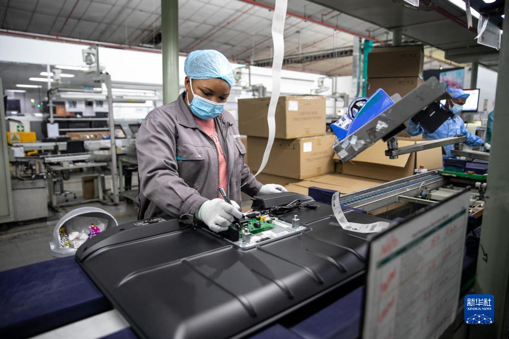 2022年6月1日,當(dāng)?shù)貑T工在南非開普敦海信南非工業(yè)園的電視機生產(chǎn)線上工作。新華社記者 呂天然 攝