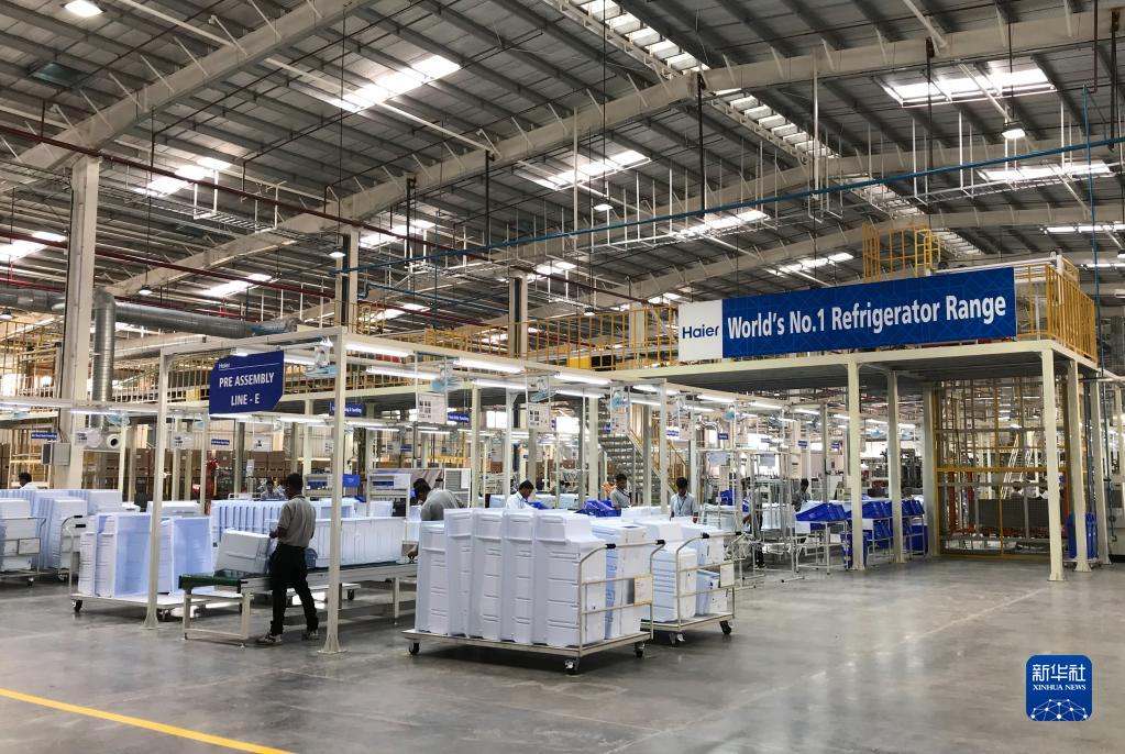 2017年11月16日,在印度浦那市,工人在中國海爾集團工業(yè)園廠房內(nèi)工作。新華社記者 張興軍 攝