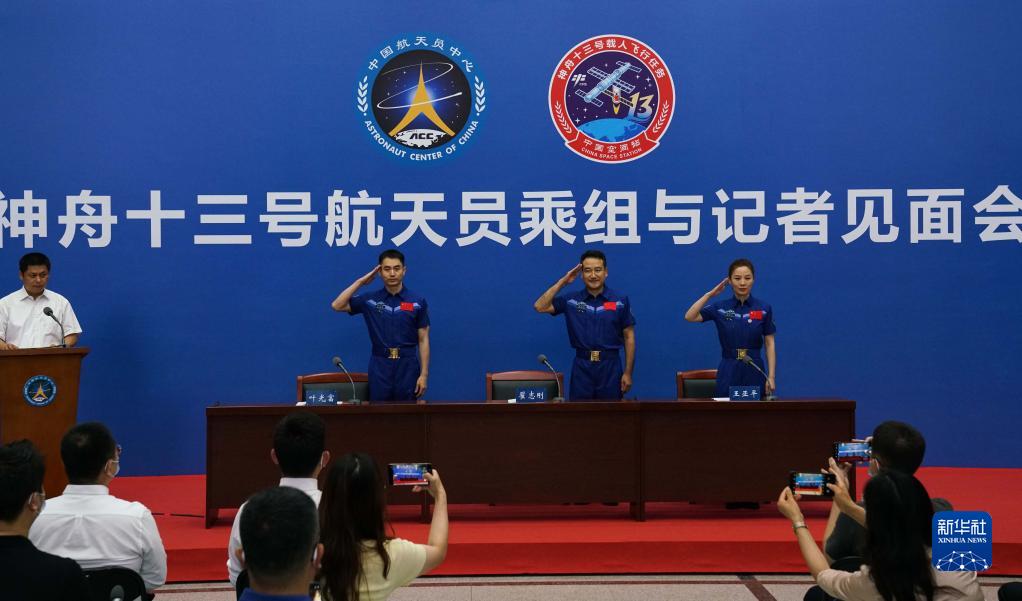新華社北京6月28日電(黃一宸、占康)神舟十三號(hào)航天員乘組28日下午在北京航天城與媒體和公眾正式見面,這是他們天外歸來74天后的首次公開亮相。