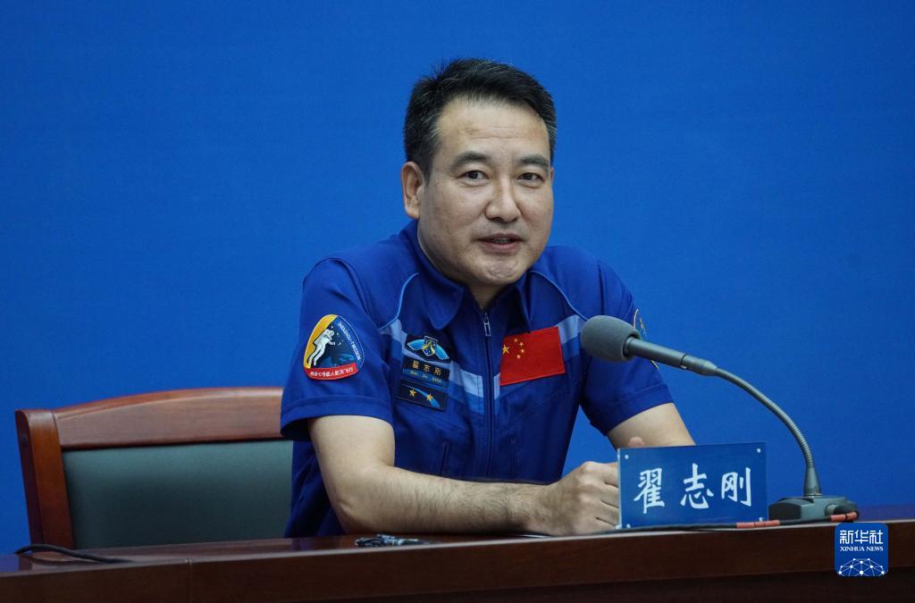 6月28日,神舟十三號(hào)航天員翟志剛在北京航天城回答記者提問。新華社記者 郭中正 攝