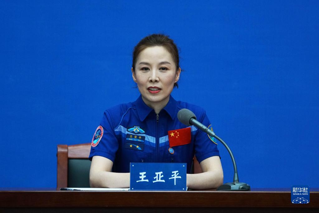 6月28日,神舟十三號(hào)航天員王亞平在北京航天城回答記者提問。新華社記者 郭中正 攝