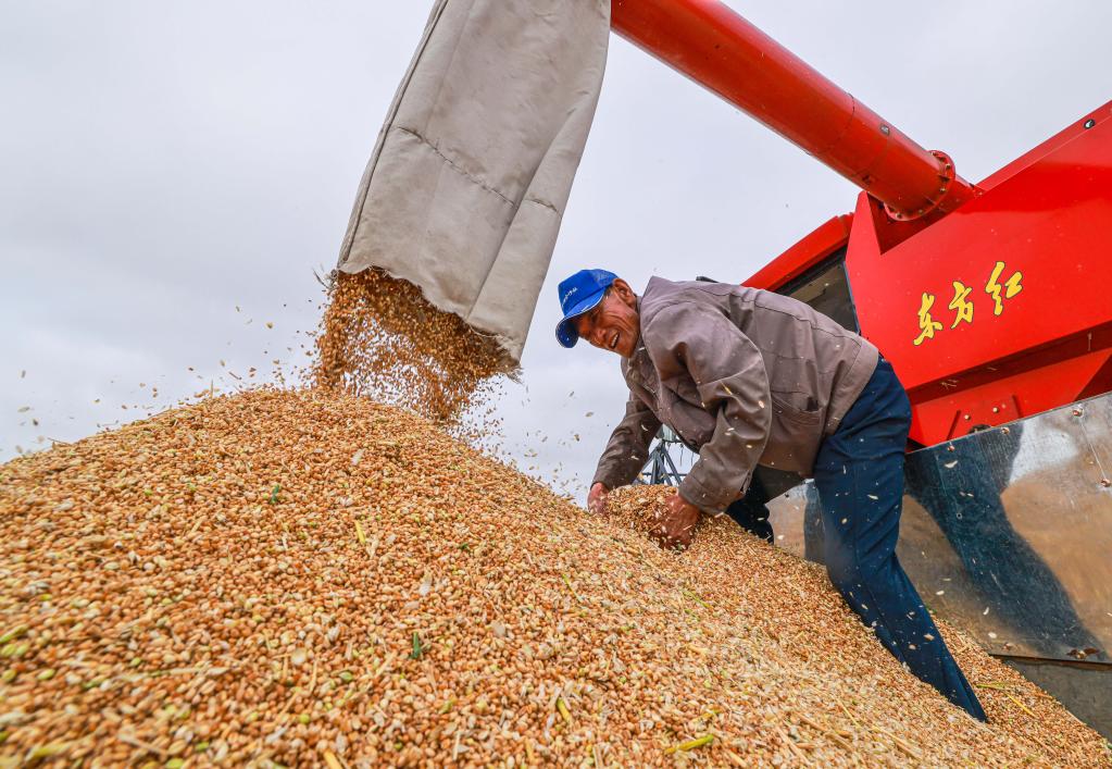 2022年6月19日,河北省遵化市劉備寨鄉(xiāng)的農(nóng)民將收獲的小麥裝車。新華社發(fā)(劉滿倉(cāng) 攝)