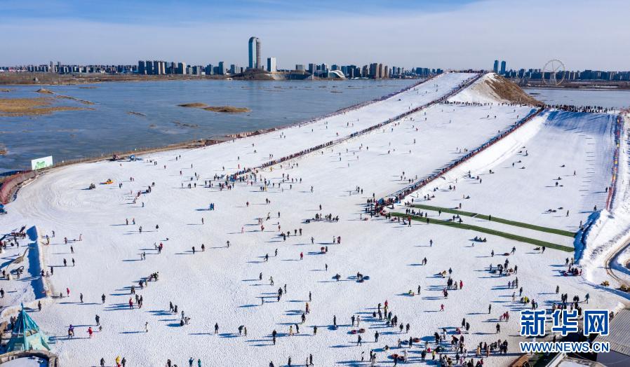 這是2021年1月30日,市民在寧夏銀川市閱海滑雪場體驗冰雪項目(無人機照片)。新華社記者 馮開華 攝
