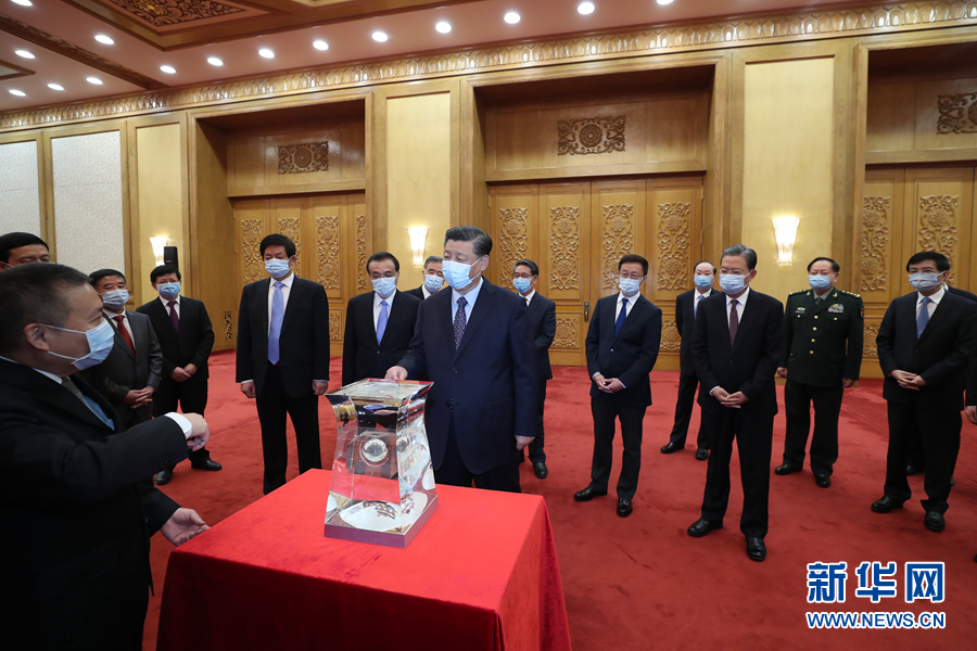 習(xí)近平在會見探月工程嫦娥五號任務(wù)參研參試人員代表并參觀月球樣品和探月工程成果展覽時強調(diào)