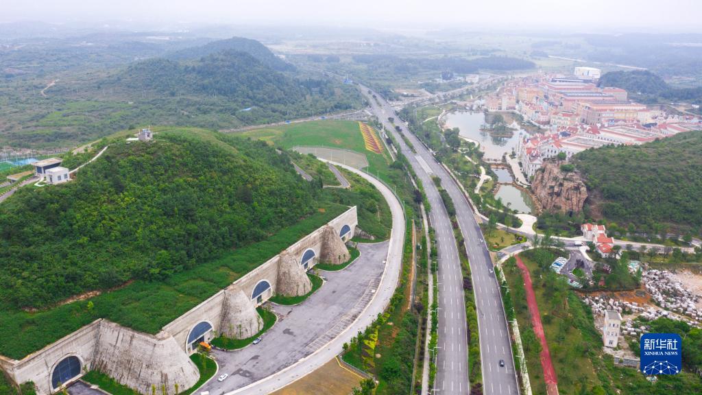 貴安新區(qū)華為云數(shù)據(jù)中心(以道路為界右側(cè))和騰訊貴安七星數(shù)據(jù)中心(左側(cè))(2022年5月24日攝,無人機(jī)照片)。新華社記者 歐東衢 攝