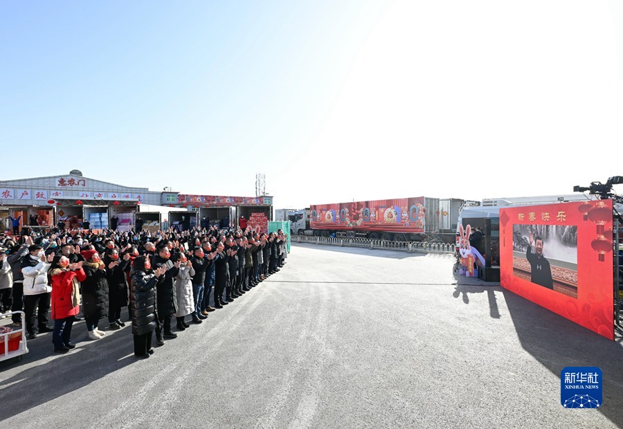 新發(fā)地農(nóng)產(chǎn)品批發(fā)市場是北京市重要的“菜籃子”、“果盤子”。習近平通過視頻親切看望慰問批發(fā)市場留守的商戶和采購年貨的群眾。在蔬菜一區(qū)露天交易區(qū),商戶和現(xiàn)場的群眾熱烈鼓掌,向總書記問好。聽完市場負責人介紹保供和物流情況后,習近平仔細詢問這幾天市場運行情況怎么樣、今年商戶的買賣怎么樣、今年批發(fā)價格怎么樣。得知菜價保持平穩(wěn)、種類充足齊全,習近平十分欣慰。他指出,民以食為天?!安嘶@子”、“米袋子”、“果盤子”,事關(guān)千家萬戶,是最基本的民生。過年過節(jié),安全不能忘。批發(fā)市場既要在拓展貨源、豐富品種、保證質(zhì)量上下功夫,也要在加強食品檢測和市場管理上下功夫,讓首都市民吃得放心、吃得舒心。農(nóng)貿(mào)市場人流物流密集,是疫情防控的重點場所,要適度調(diào)控人流物流,加強疫情監(jiān)測檢測,搞好市場環(huán)境衛(wèi)生,盡最大努力降低疫情風險。習近平強調(diào),各級黨委和政府要落實好“米袋子”省長負責制、“菜籃子”市長負責制,加強糧油肉蛋奶果蔬菌等重要民生商品的產(chǎn)銷保供,暢通物流配送,豐富節(jié)日市場供應(yīng),確保數(shù)量充足、品種豐富、質(zhì)量放心、價格穩(wěn)定,讓人民群眾開開心心、安安心心過大年。