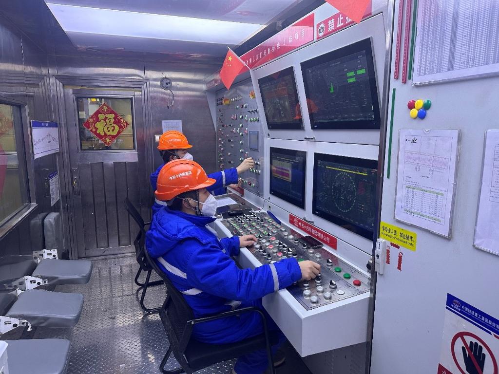 在中鐵十四局上海機(jī)場(chǎng)聯(lián)絡(luò)線2標(biāo)段施工現(xiàn)場(chǎng),盾構(gòu)機(jī)長(zhǎng)正操作盾構(gòu)機(jī)不斷掘進(jìn)。(受訪者供圖)