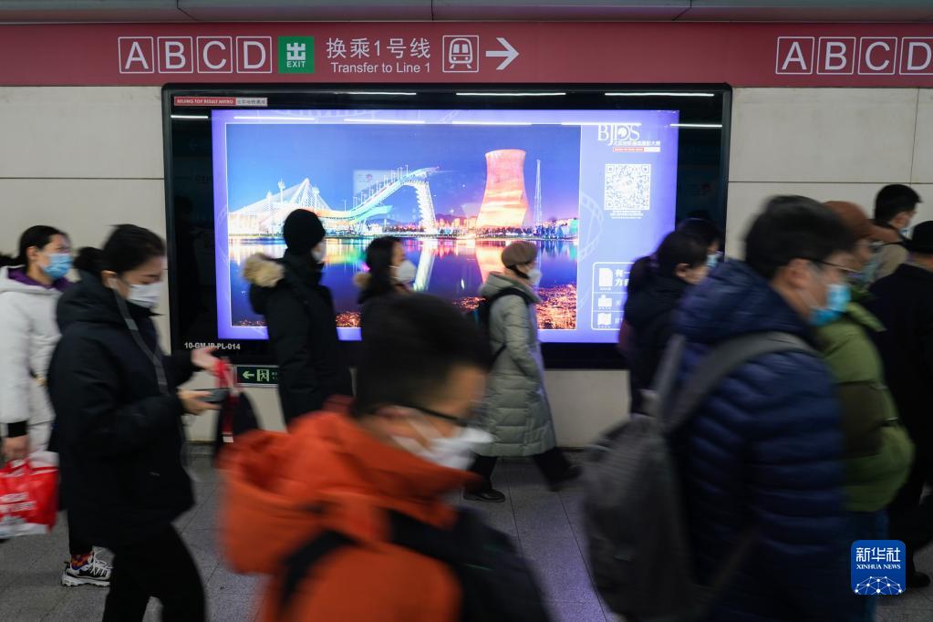 1月28日,在北京國貿(mào)地鐵站內(nèi),市民們穿過通道。新華社記者 彭子洋 攝
