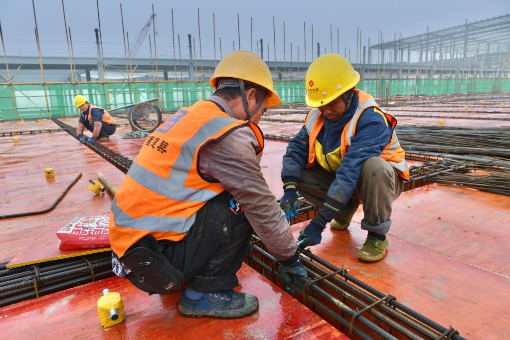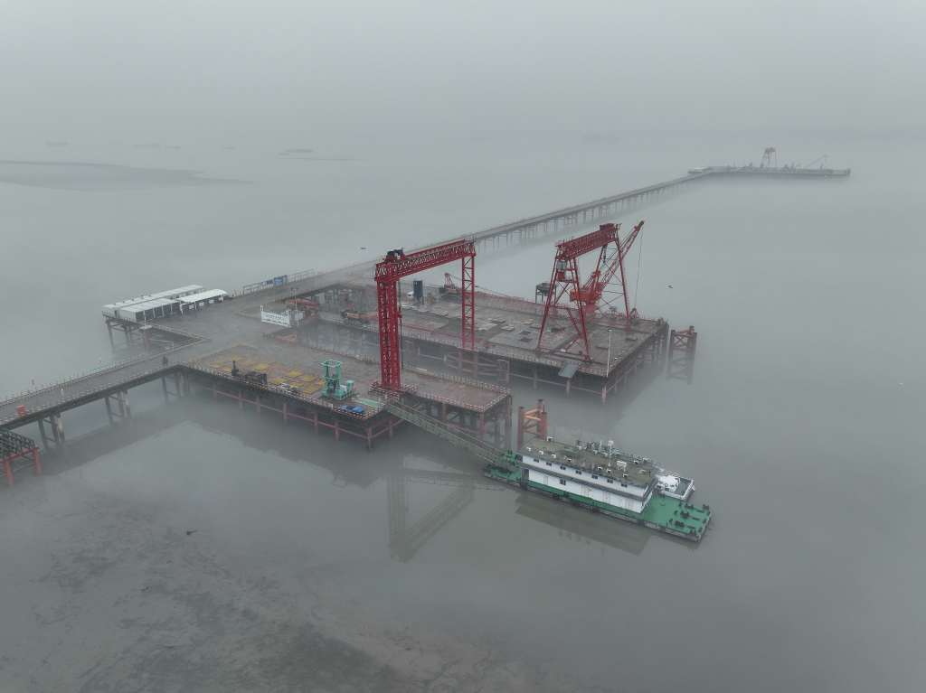 連接江蘇蘇州、泰州和南通的張靖皋長(zhǎng)江大橋南航道橋施工現(xiàn)場(chǎng)(1月13日攝)。新華社記者季春鵬 攝
