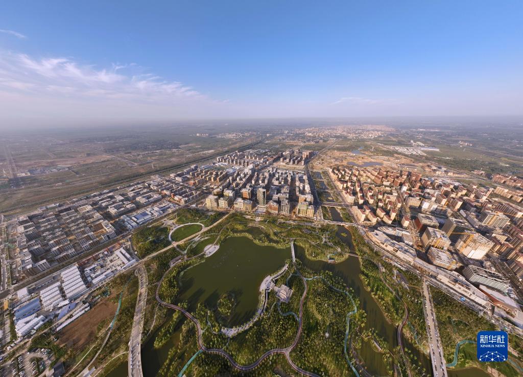 這是清晨時分的雄安新區(qū)容東片區(qū)(2022年9月8日攝,無人機照片)。新華社記者 邢廣利 攝