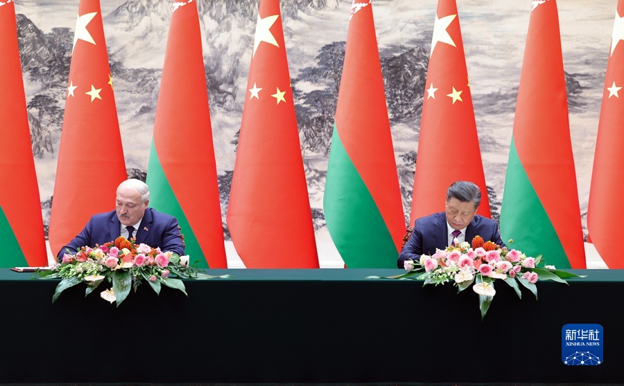會談后,兩國元首共同簽署《中華人民共和國和白俄羅斯共和國關(guān)于新時代進(jìn)一步發(fā)展兩國全天候全面戰(zhàn)略伙伴關(guān)系的聯(lián)合聲明》,并見證簽署經(jīng)貿(mào)、工業(yè)、農(nóng)業(yè)、海關(guān)、科技、衛(wèi)生、旅游、體育、地方等領(lǐng)域多項(xiàng)雙邊合作文件。